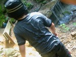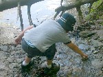 昨晩のスコールもあってか、水は濁ってます。息子も、楽しそう。ようやく、親の手も